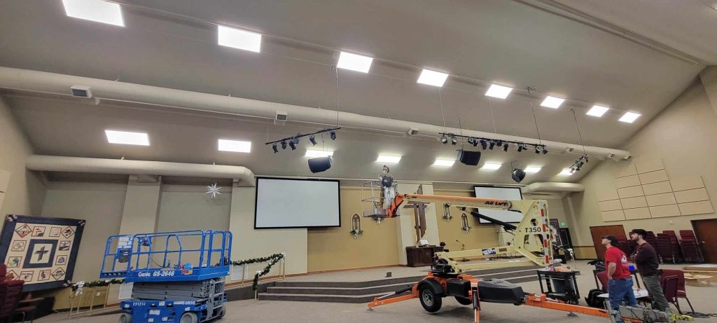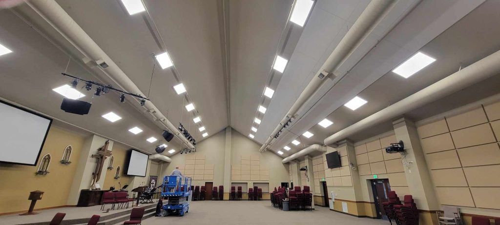 The Friendship Celebration Lutheran Church, constructed in the early 2000s, faced the challenge many organizations encounter: aging lighting systems that are costly to maintain, fall short in illumination quality, and consume excessive energy. Annual lift rentals for lamp replacements and the struggle with color matching as lamps aged or were replaced with varying LED tube retrofits also outlined the demand for a modern lighting solution. Moreover, the ability to customize lighting for different events and gatherings was an essential requirement. The church needed a reliable, sustainable lighting system with advanced controls to address these issues.