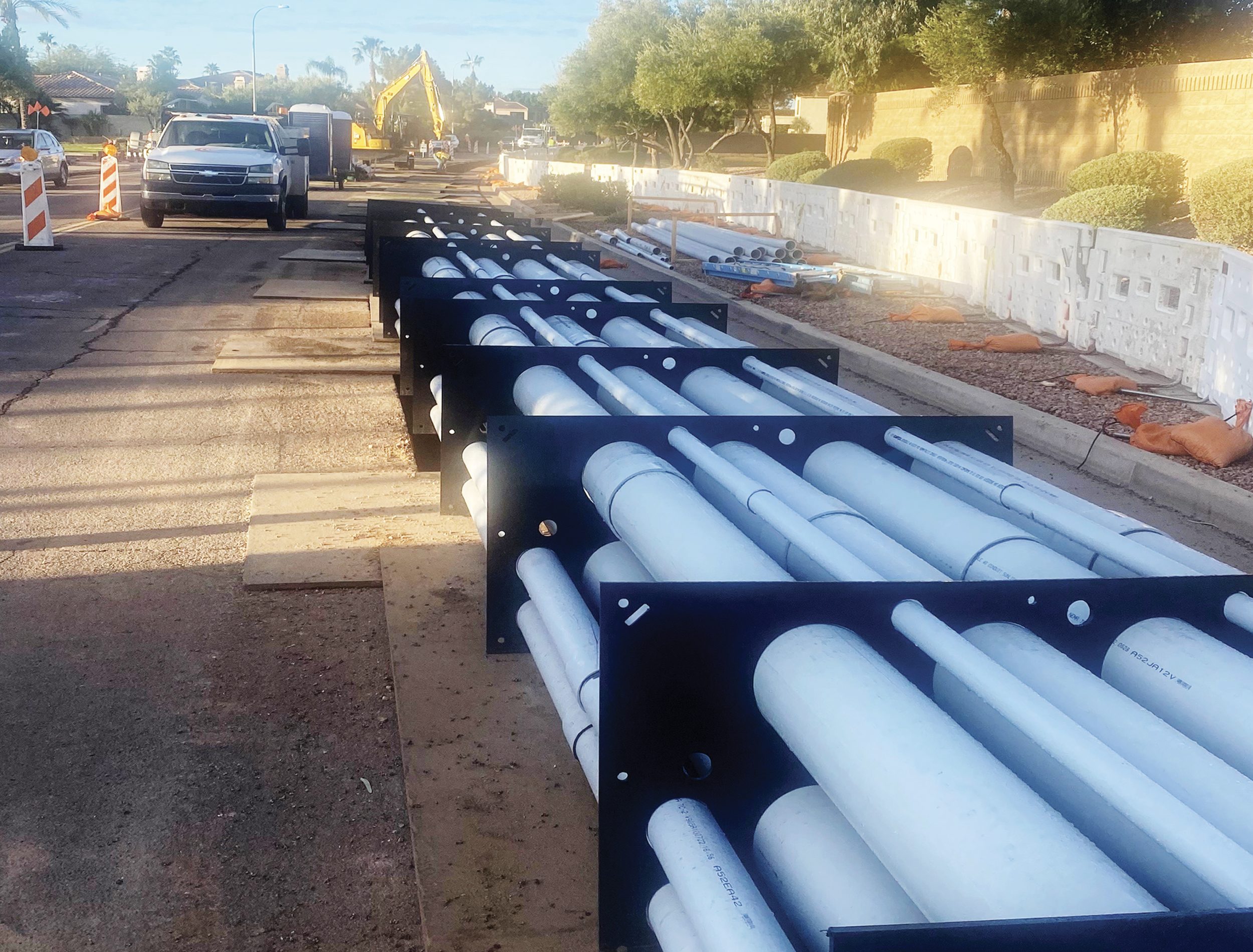 The contractor is in a position to start and finish its project with many S-P Products offerings as Qwikduct templates for underground duct banks that meet engineering specifications, UL Listed, tested for load, mold and temperature, digging a narrower trench, thus less excavation, concrete yardage and backfill; lowering all conduit from above trench with no workers inside trench as a safer way to go build duct banks.