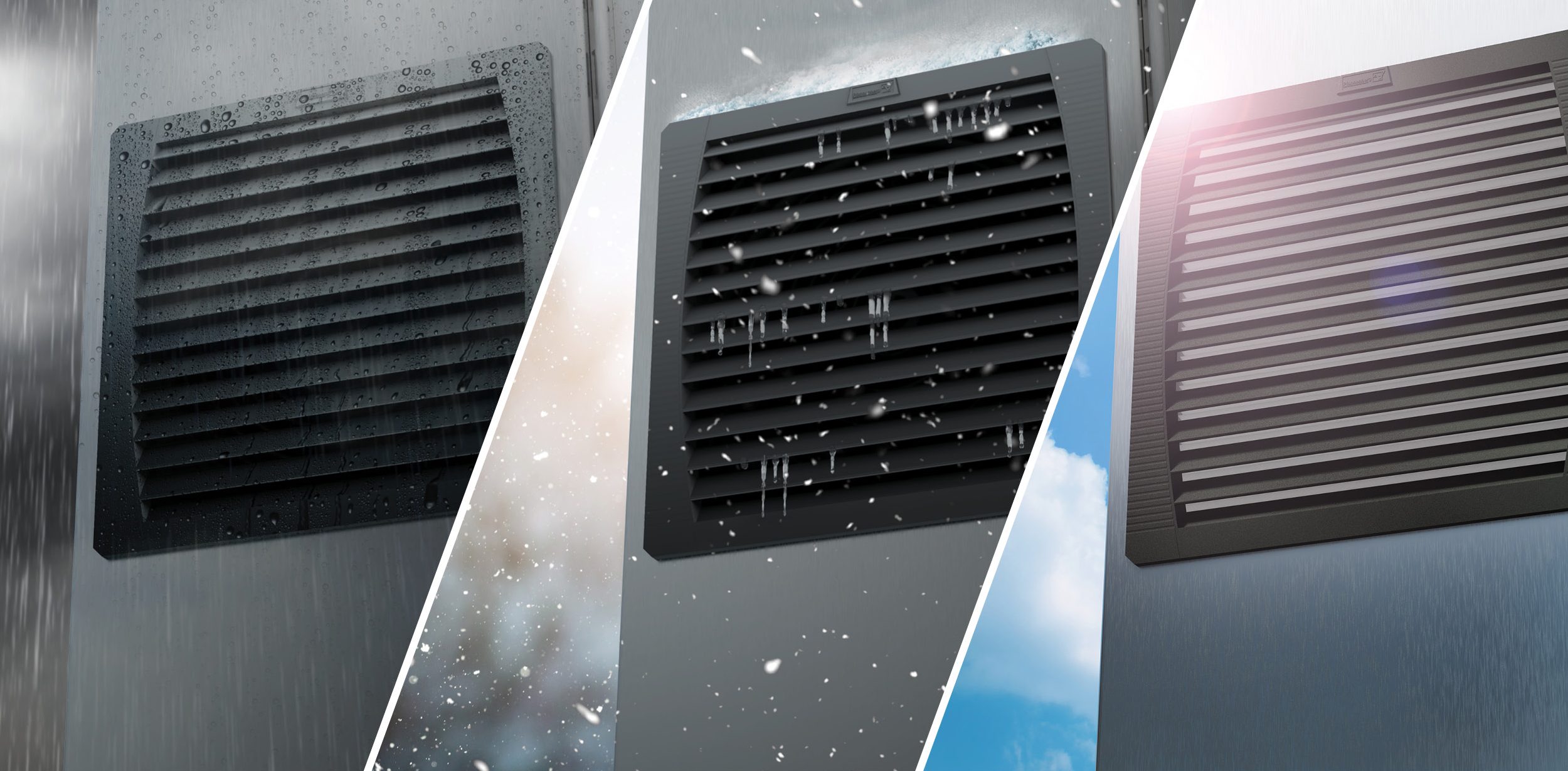 When properly designed and integrated, outdoor filter fans can provide an energy efficient solution for heat load maintenance while also protecting enclosures from dust, ice, water, and sunlight. However, many filter fans on the market do not effectively protect critical electrical equipment. When improperly designed, filter fans can be subject to ice and dust buildup or damage from UV radiation and rainwater. These conditions can cause short circuiting within the enclosure. While there are workarounds for water infiltration, such as adding a rain hood, these additional steps increase space requirements and initial investment costs.