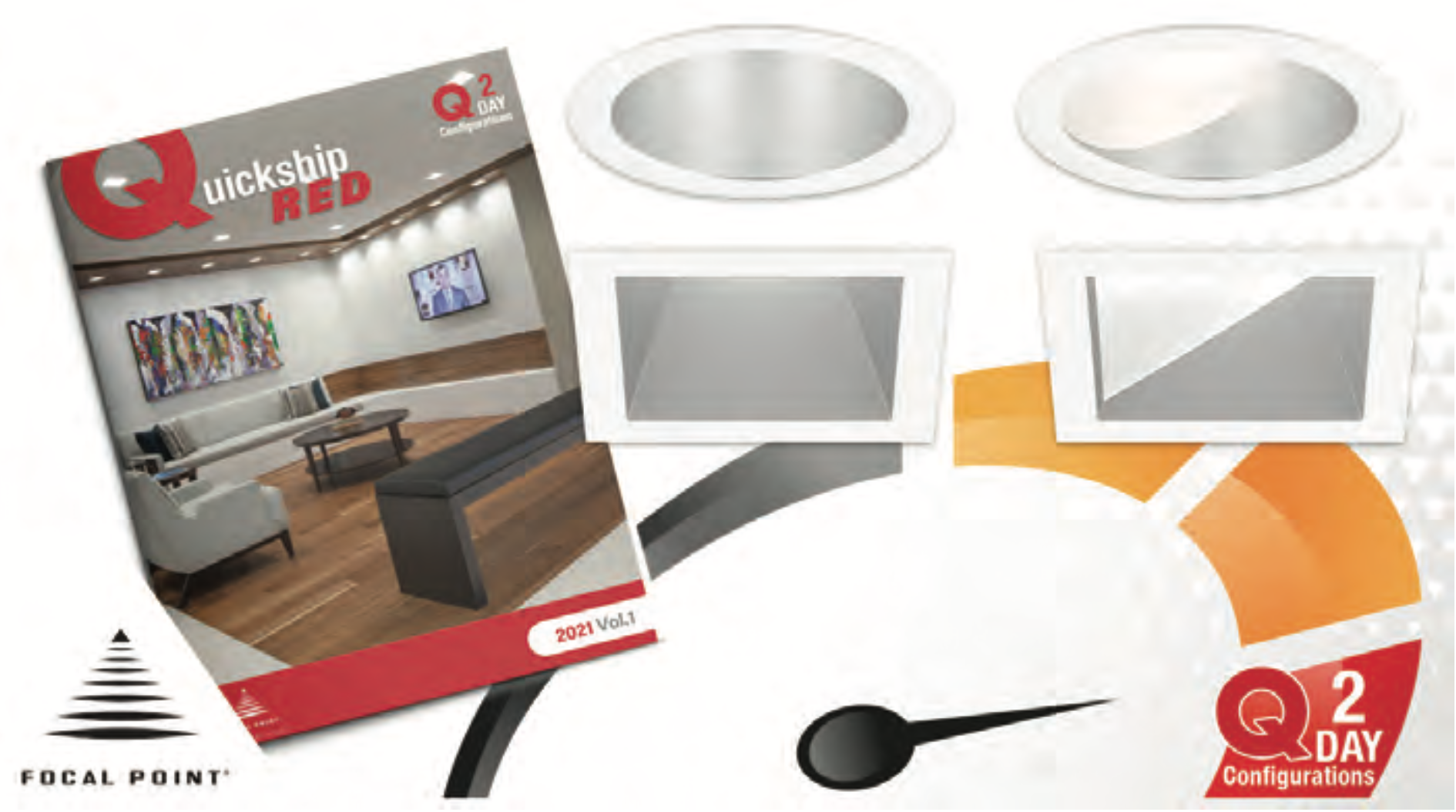 With the introduction of Quickship Red, Focal Point is expanding its current Quickship program by offering a short, two-day lead time on up to 200 pieces for downlights and 100 pieces for wall washers. Unlike a stock program, Quick- ship Red answers the customers’ needs for speed and selection by offering a range of options to configure luminaires that ship in two business days. This new capability establishes Focal Point as the fastest manufacturer of commercial architectural grade, made-to-order downlights in today’s market.