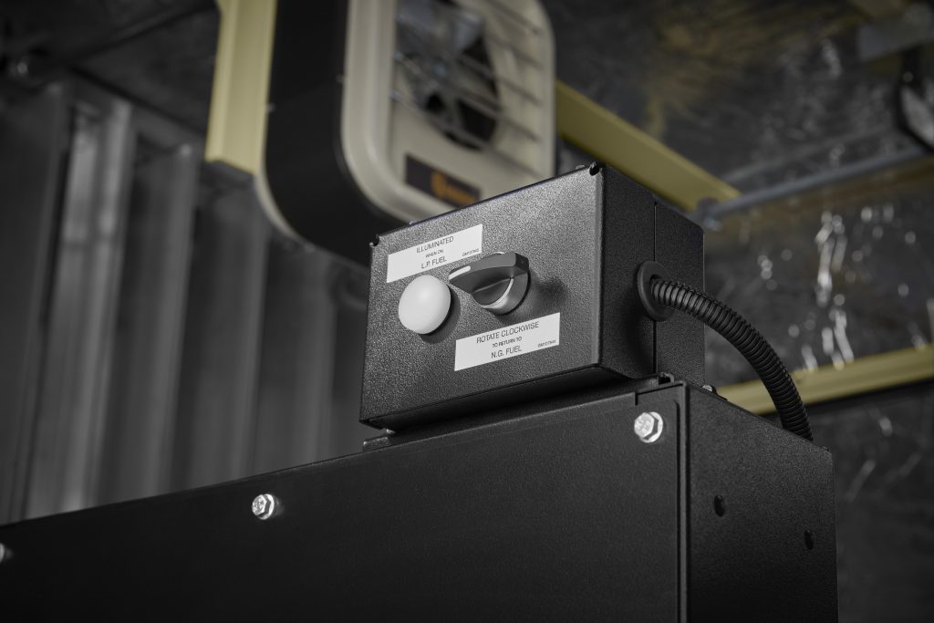 These generators provide users with the flexibility to select the appropriate gas fuel source for a specific application including natural gas (primary) and LP (secondary), and feature a dual fuel option with a patent-pending fuel reset box. This dual fuel system enables the generator to switch automatically from natural gas to LP, and when sensing that LP is low it reverts back to natural gas. There is also a switch on the reset box that allows users to switch from one fuel to the other manually without operation disruption. For ease of installation, a fuel inlet connection is provided on the skid wall along with an oil drain connection.