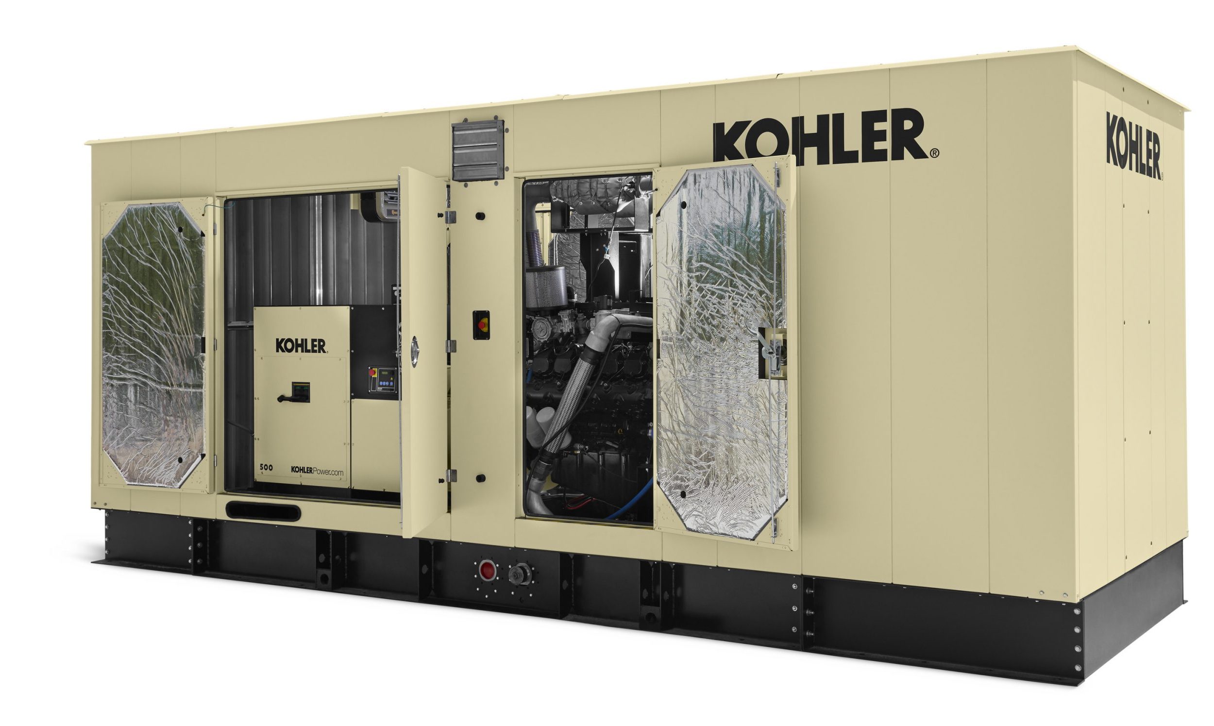 “We understand that installation versatility and footprint parameters are always important considerations for our customers, so we focus a great deal of attention on designing a compact package without sacrificing power and performance,” said Amy Haese, associate product manager for KOHLER industrial generators. “Our 400 and 500 kW enclosures were designed with a 34-inch reduction in length and 10-inch reduction in width to ensure flexibility in installation.”