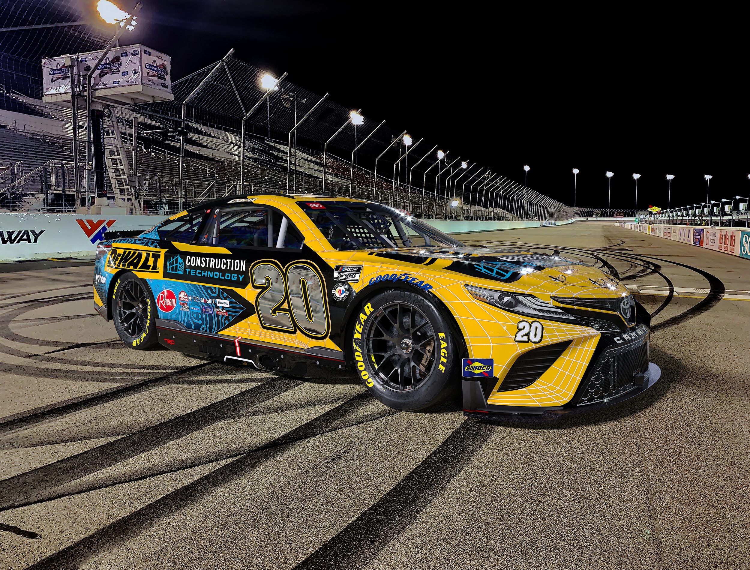 In celebration of DEWALT’s release of construction technology solutions, Christopher Bell, driver of the No. 20 Toyota Camry TRD for Joe Gibbs Racing, will sport a DEWALT Construction Technology paint scheme during the June 4th NASCAR Cup Series race weekend at World Wide Technology Raceway.