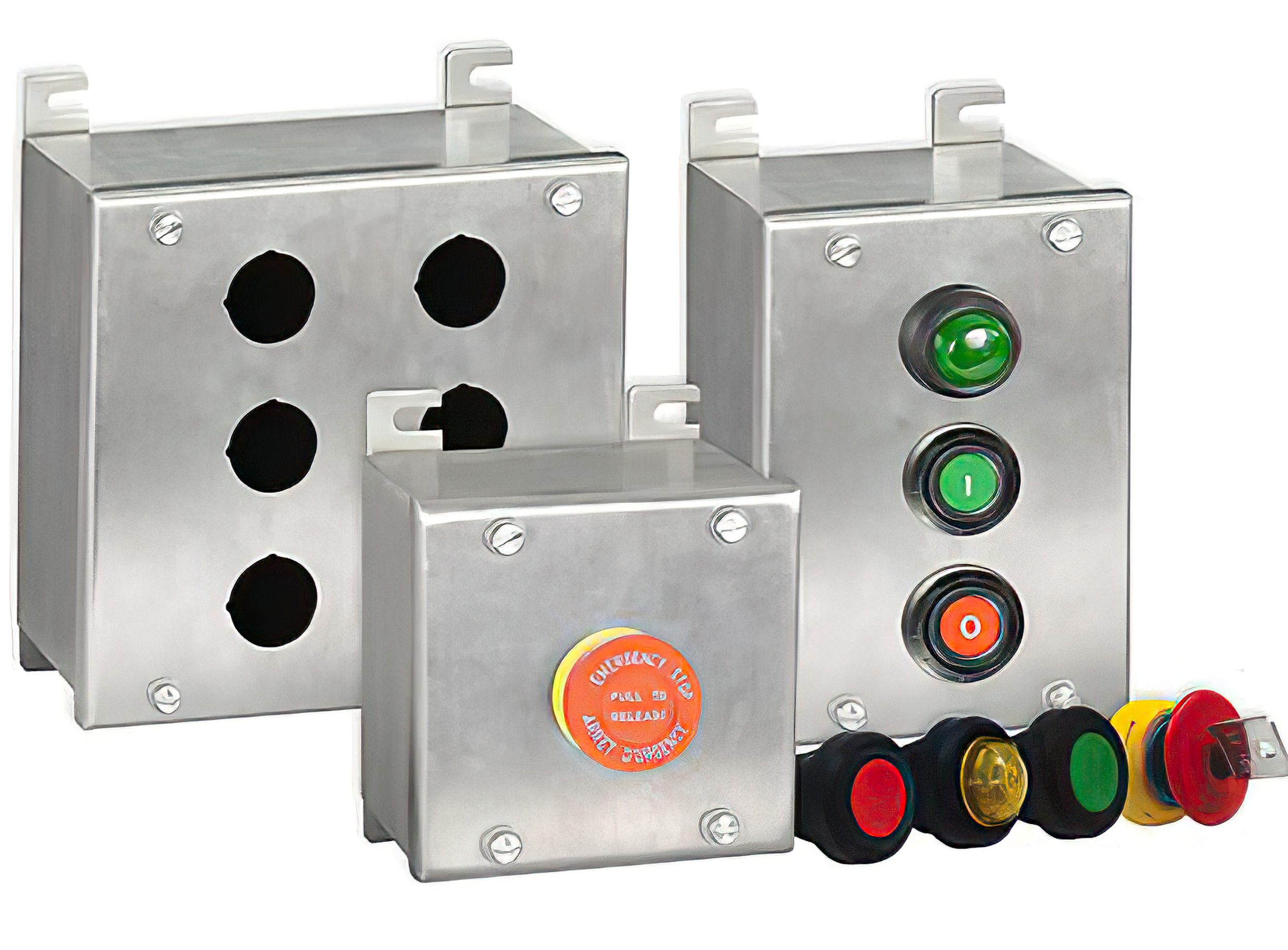 To satisfy the most complex control requirements, the stations are highly customizable. Engineers can specify an enclosure and cover in fiberglass-reinforced polyester, 316L stainless steel, aluminum, or polyamide. Also, there is a wide selection of push buttons, illuminated push buttons, selector switches, control and load break switches, along with LED high-intensity pilot lights for visual assurance that an electrical function is being performed. Up to three contact blocks per actuator can be installed in each station.