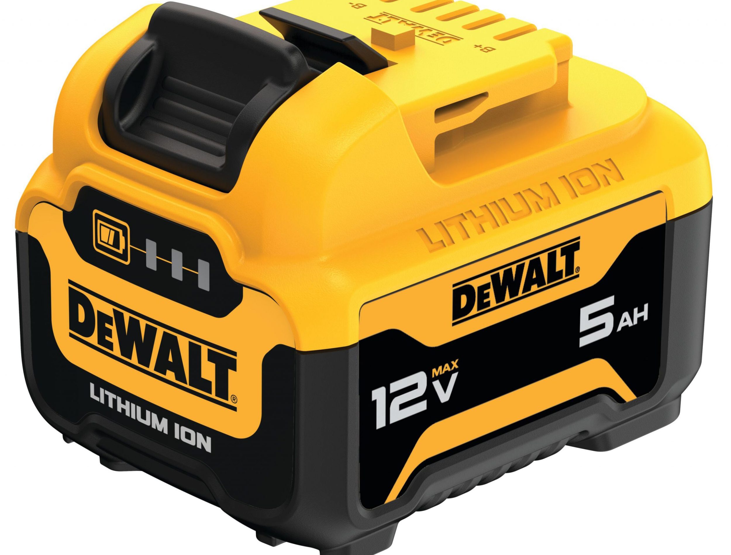 In comparison to existing DEWALT 12V MAX* batteries, the 12V MAX* 5.0 Ah battery includes twice the number of lithium ion cells, contributing to increased run time and expand- ing the capabilities of the 12V MAX* System. The pack is compatible with most 12V MAX* power tools and chargers and includes a 2-year limited warranty.