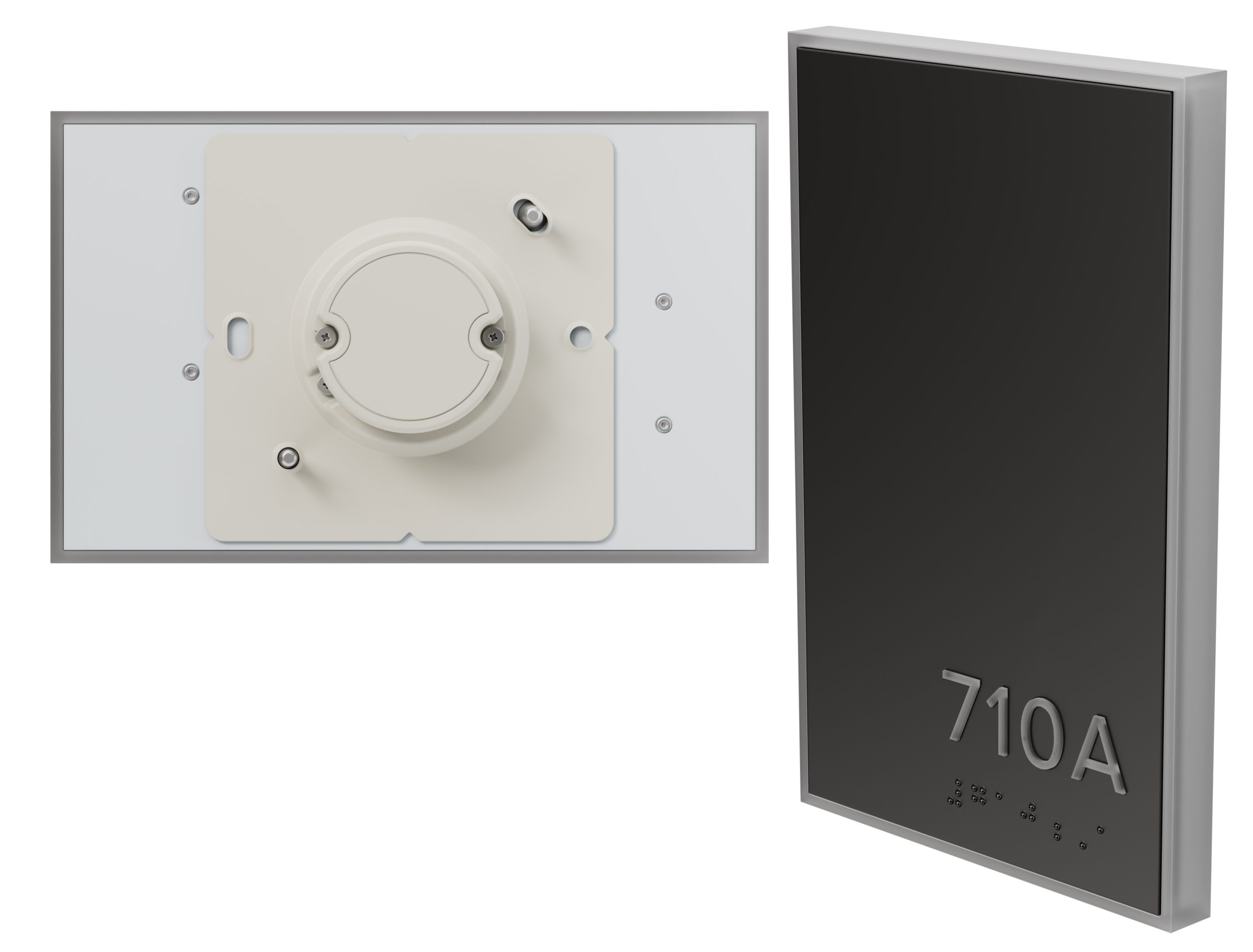 Specifically tailored for multifamily, hospitality and healthcare applications including apartments, condominiums, student housing, senior living spaces, hotels and patient rooms, among other mix-use spaces, the modular design features an integrated driver – versus remote – allowing for straight-forward installation and simplified serviceability. The modularity of the signage allows the frame and electrical components to ship separately so that the frame and components can be installed first and the faceplate later, reducing on-site storage requirements while maintain tight project deadlines.