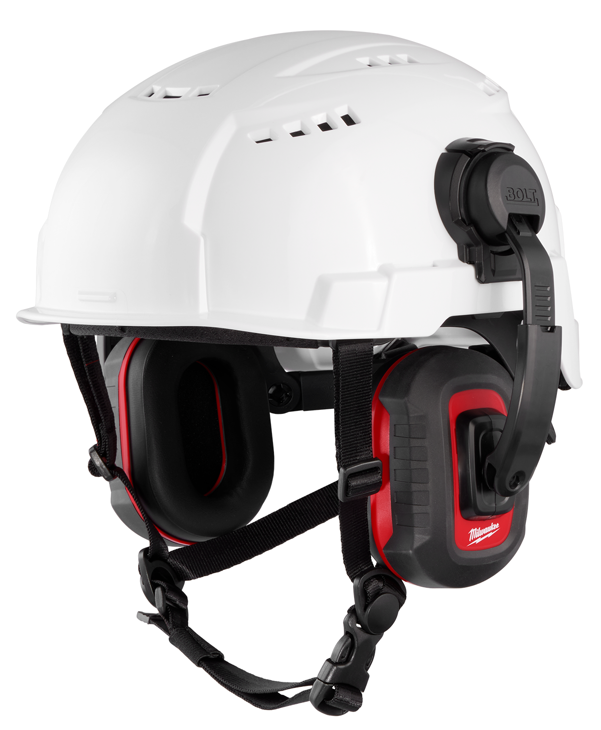 CSA (Canada Safety Association) Class A certified, the BOLT™ Earmuffs are color-coded and available in a NRR (Noise Reduction Rating) of either 24dB (Red) or 26 dB (Grey). The Earmuffs are part of the BOLT™ system, which allows users to secure accessories simultaneously and secure into the Milwaukee BOLT™ safety helmets and hard hats.