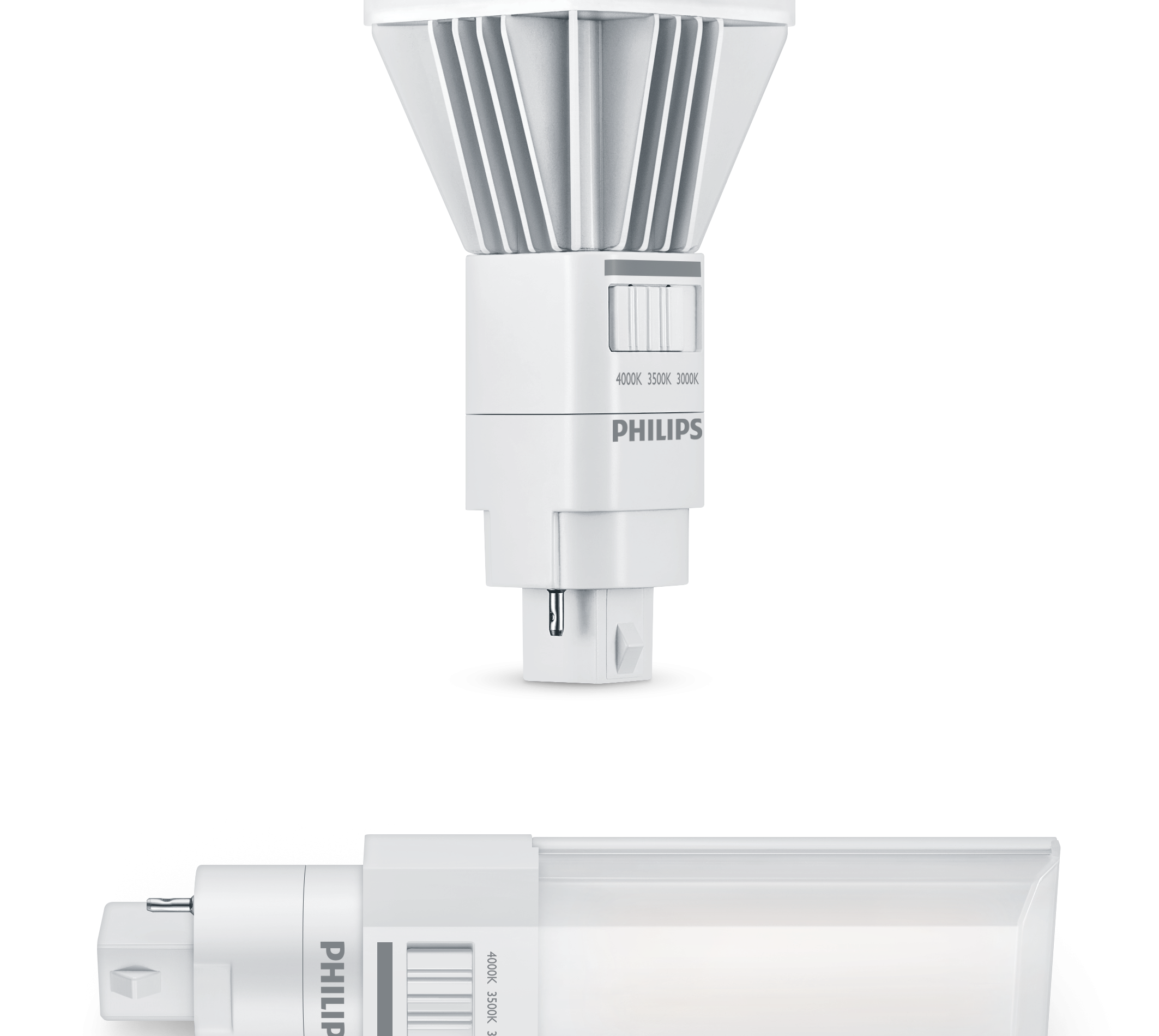 Philips MainsFit (Type B) CorePro Adjustable Color Temperature PL-C/PL-T replacement lamp family provides a unique solution to end users by providing three color choices in one lamp.