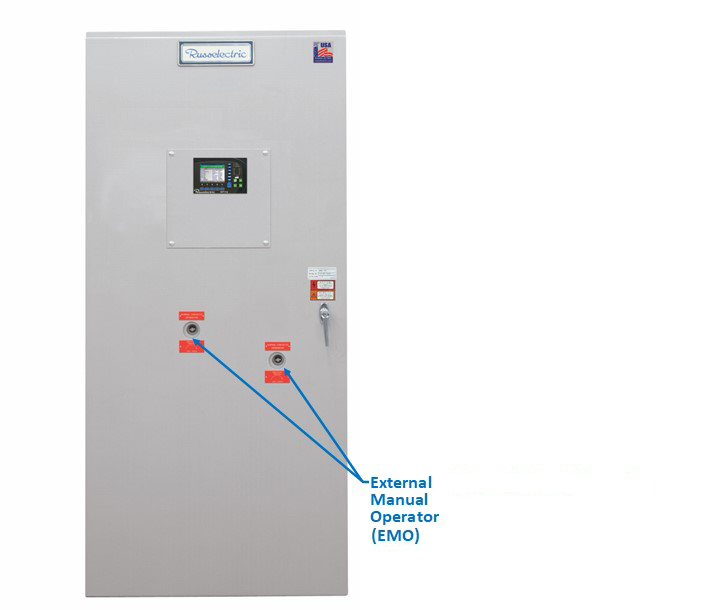 Russelectric, A Siemens Business, a leading manufacturer of power control systems and automatic transfer switches, highlights the External Manual Operator (E.M.O.), a standard feature of the Russelectric® RTS-03 Series and RTS-30 Series of open-transition automatic transfer switches, the most rugged and complete line of 480 VAC 30-cycle and 3-cycle UL tested switches available in the market today. The unique External Manual Operator feature enables easy, safe, and quick manual transfer with the door fully closed, significantly reducing downtime and the risk of arc flash injuries.