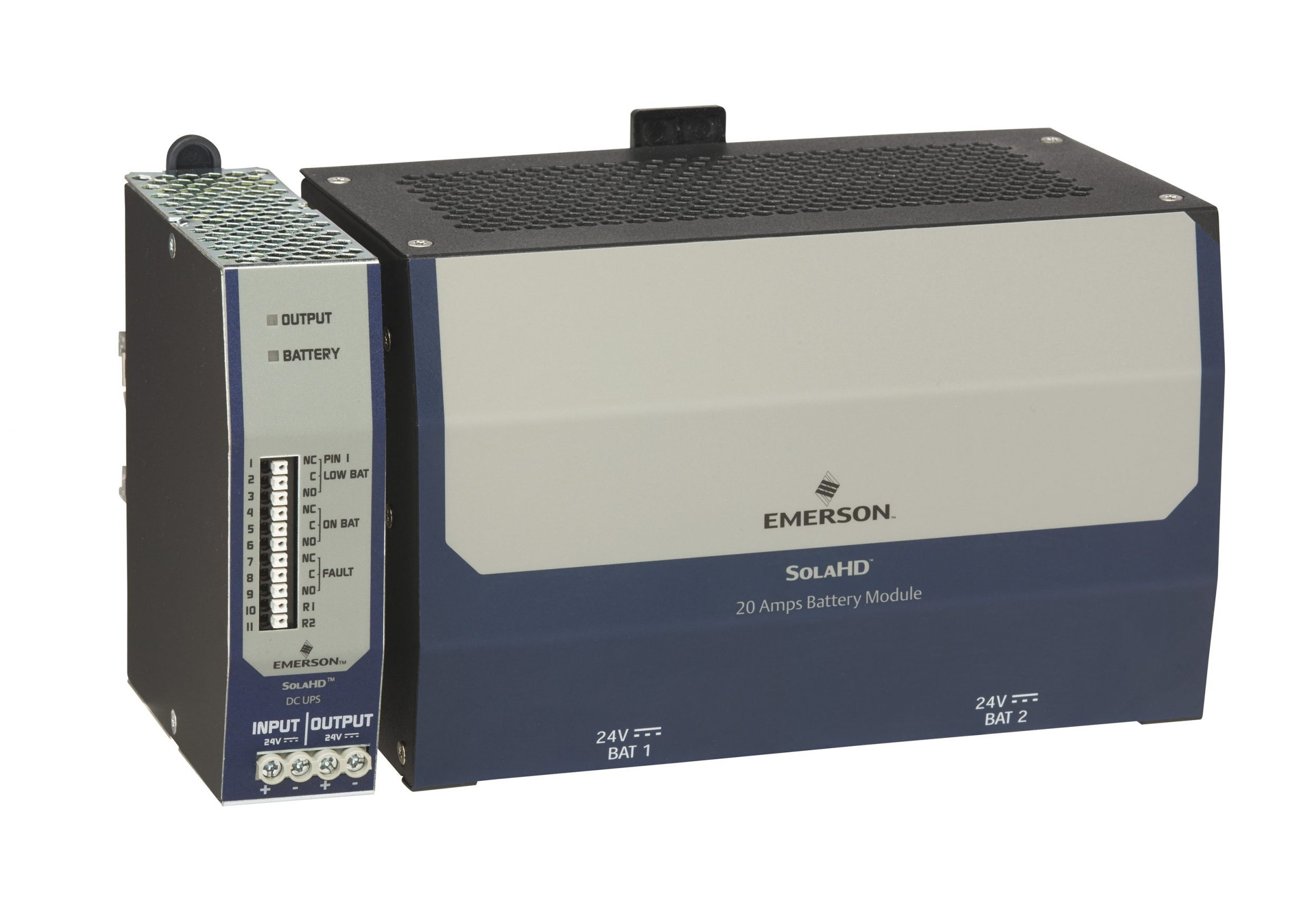 The SolaHD™ SDU DC-B UPS by Emerson helps improve availability of mission-critical devices, while simplifying commissioning, reducing maintenance, and driving down the Total Cost of Ownership across multiple industries. Leveraging microprocessor-based controls, the SolaHD SDU DC-B bridges power to machinery in the event of a brief disruption, as well as allows for safe shutdown of devices during a mains failure, therefore preventing data loss, work interruptions or equipment damage. With an input voltage range of 22.1 Vdc to 28.6 Vdc, the SolaHD SDU DC-B also provides a consistent flow of clean power by filtering noise and isolating damaging transients that are common in applications such as automotive manufacturing, material handling conveyors, the life sciences, pharmaceuticals processing, and “pick and pack” areas in distribution centers.