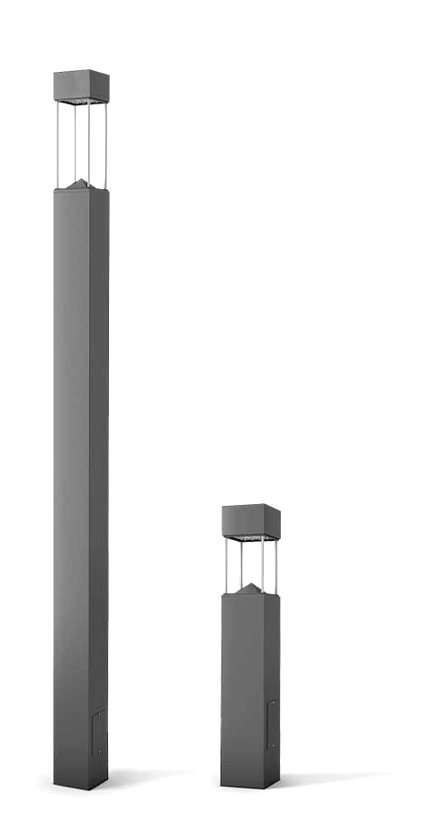 The AXIM square columns, available in heights ranging from 3 feet to 12 feet, are ideal for pedestrian-scale applications such as parks, pathways, plazas, building entrances, and walkways. Continuing the success of the AXIM round-lighted styles, these square columns and bollards deliver a sophisticated lighting solution while providing secure, evenly distributed illumination.