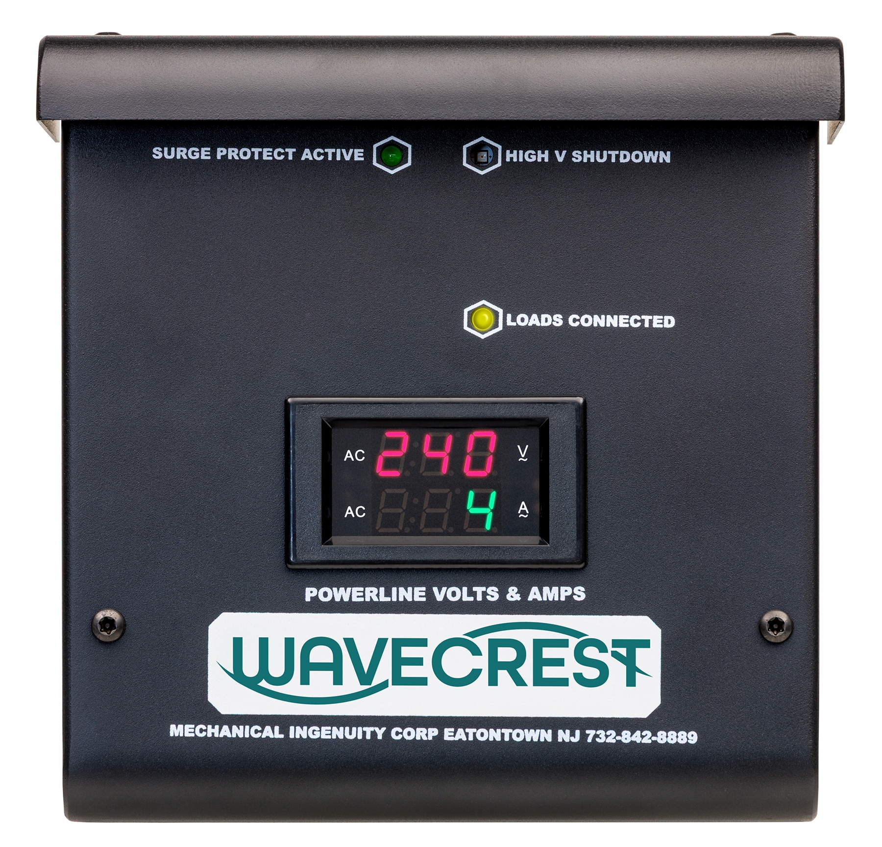 With a unique, multi-stage design, Wavecrest uses a patent-pending array of MOVs, capacitors, chokes, and transformers to protect against surge (let thru voltage of only 10%), harmonics, RFI, transients, notching, noise, flicker, and more. The Wavecrest also provides one-of-a-kind overvoltage protection. If a mishap of over or under voltage occurs, as commonly occurs when power comes back online after an outage or a neutral wire is accidently disconnected, the Wavecrest opens the circuit, protecting connected equipment, and the Wavecrest itself, from failing due to the voltage condition. The diagnostics display helps the user understand the status of their power and the equipment.